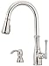 DURABLE MATERIAL: This single hole pre-rinse kitchen faucet is made of brass and zinc with a stainless steel finish, giving your kitchen a perfect touch of style.