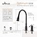【SLEEK DESIGN】-- Oil rubbed bronze kitchen faucet is an elegant appearance on our original designer's magnum opus. Unique industrial aesthetic appearance, very efficient and convenient to complete the two tasks of washing and flushing with one hand.