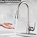 【HANDS-FREE CONTROL & ERGONOMIC DESIGN】Whether you have two full hands or 10 messy fingers, soosi touchless kitchen faucet combined with modern touchless and touch on design technology helps keep your kitchen faucet clean. Turn on faucets and wave your hand over the sensor to start and stop the flow of water or use the single lever handle manually.High-arch spout,360-degree for a broad range of motion in and around the sink.