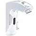 Turns water on and off automatically when infrared sensor detects hand motion