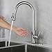 【HANDS-FREE CONTROL & ERGONOMIC DESIGN】Whether you have two full hands or 10 messy fingers, soosi touchless kitchen faucet combined with modern touchless and touch on design technology helps keep your kitchen faucet clean. Turn on faucets and wave your hand over the sensor to start and stop the flow of water or use the single lever handle manually.High-arch spout,360-degree for a broad range of motion in and around the sink.