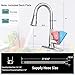 【HANDS-FREE CONTROL & ERGONOMIC DESIGN】Whether you have two full hands or 10 messy fingers, soosi touchless kitchen faucet combined with modern touchless and touch on design technology helps keep your kitchen faucet clean. Turn on faucets and wave your hand over the sensor to start and stop the flow of water or use the single lever handle manually.High-arch spout,360-degree for a broad range of motion in and around the sink.