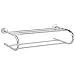 A stand-alone chrome-plated towel rack with a lower wire shelf