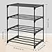 【STORAGE CAPACITY】Dimension:17.3L*12.2W*21.3H.Each tier of shelf could fit 2 pairs of shoes.This 4-tier durable shoe rack can well store around 8 pairs of shoes.This rack is not only for shoes, but also for bags, toys, towel, sundries, books, plants and small accessories.