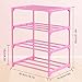 【STACKABLE DESIGN】The small shoe organizer adopts stackable tenon joint design. This thin shoe rack reduces the use of floor space and is ideal for a variety of small places. You can order two 4-tier mini shoe racks, you can stack the pink shoe self to a 8-tier shoe rack,as an entry shoe rack or closet shoe rack, or front door shoes.