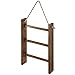 Decorative 3 tier torched wood hand towel storage ladder with 3 bars and rustic hanging rope