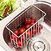 MATERIAL - The kitchen sponge holder is made of advanced 304 stainless steel, no rust and durable to use. Size: the specific sizes are marked in the third picture. Note: please kindly check the demension of your kitchen sink before purchasing this sponge holder to make sure the size is right.