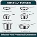 [Complete and Durable Cookware Set] Experience culinary excellence with our Cookware Sets, featuring essential pieces such as 1qt &3 qt saucepans, skillets, frying pans, stockpots, and sauté pans. Crafted from food-grade 18-10 stainless steel (304 stainless steel), pot sets are not only durable but also resistant to corrosion and oxidation, ensuring safe and long-lasting use