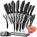 ALL-IN-ONE KNIFE SET - MIDONE 17-piece kitchen knife set meets all cutting needs, includes: 1 PCS 8" Chef knife, 1 PCS 8" Carving knife, 1 PCS 8" Bread knife, 1 PCS 7" Santoku knife, 1 PCS 5" Utility knife, 1 PCS 3.5" Paring knife, 6 PCS 4.5” Steak knives, 1 PCS Pizza knife and scissors, peeler, knife sharpener and acrylic stand.