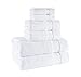HIGH QUALITY TOWELS: These towels are made from 100% ring spun Turkish cotton which allows them to be extremely absorbent, soft and fluffy. The soft touch of these luxurious and remarkably plush towels allows you to feel spa grandeur in the comfort of your own home. The double-stitched hem and natural weave guarantees durability and strength.