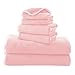 5-BATH TOWELS - Treat yourself with this 5-pack bath towel set and you will enjoy it best at home, camping trip, vacation home, and for your guest. Fashionable colors make it ideal for all, mom, dad, boy, girl, and baby too. Set includes a variety of 5 great pastel colors, lavender, orange, white, aqua and pink, and get 2 12" x 12" washcloths.