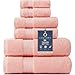 🔎 HIGH QUALITY - 100% COTTON 6 PC BATH TOWEL SET - Cotton is always Better than Microfiber in many ways - Our Cotton Towels are made of Long Staple Ring Spun Natural Fiber, they have nice Thick Terry Loops, they have a Plush feel and are more Durable, it's Safe for your Skin and Hair. These Bath Sheets Will Give a Premium Look in your Bath Room.