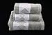 This set of towels will bring an eloquent look to any bathroom decor. Each towel is bordered with a white band.