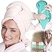 🥰 SAY GOODBYE to FALL OFF - Easy one-hand lock button design assures No slipping or dripping. Be more active while your hair dries quicker. 30-inch-long super absorbing towel twists and buttons easily with one hand, securely hugs your head. You can get dressed, apply makeup, check email, and watch movies while drying hair without worrying about the head towel wrap falling off. Save your precious time with Leporem microfiber hair towels!