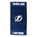 Features NFL team logo and name in the center of the towel, laid out vertically with bold stripes above and below