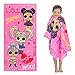 LOL SURPRISE DESIGN: This cute and colorful beach towel is the perfect pool-side accessory for every little glamor girl. This animated pink towel features adorable imagery of LOL Surprise dolls Oops Baby, Purple Queen and Kitty Queen.