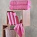 SET OF FOUR TOWELS - Includes two (2) striped kitchen towels in pink and white and two (2) solid pink towels. Each generously sized towel measures 16" W x 26" L.