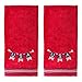 Set of two dog themed embroidered waffle weave towels - gray with red and white design