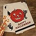 COTTON DISH TOWEL: Features a "Happy Halloween" sentiment, velvet ribbon trim, and black cat print throughout