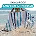 SAND FREE BEACH TOWEL: Microfiber striped beach towel with a carry bag is the perfect compact towel for drying off after the beach or swimming at the pool. Perfect portable towel for travel, it is lightweight, compact, and easily fits into the included mesh bag. High-quality microfiber is soft and sand resistant. Sand repellent, will not stick and easily shake off so you don't bring any back in your bag, car, or home.