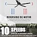 Powerful DC Motor: This smart ceiling fan is equipped with a powerful DC motor. The low cost reversible brushless DC motor can generate 10 different wind speed.The airflow is up to 4024 CFM and down to 980 CFM. Furthermore, the silicon steel DC motor will make no noise at any time and the reverse air flow function allows you to switch the direction from downward to upward Thanks to the DC motor, this fan can also be used indoor and outdoor.