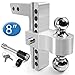 🛻 POWERFUL TOWING CAPACITY: The hitch has a 2" ball with a towing capacity of 8,000 lbs and a 2-5/16" ball with an industry-leading capacity of 12,500 lbs. It also offers an 8" drop down depth and 8" rise height for easy adjustment to your towing needs.