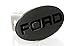 Officially licensed Ford Oval Wordmark trailer hitch cover plug.