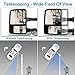 🎄 MULTIFUNCTION - Manual Folding, Manual Telescoping, Heated, Signal, Puddle Light, Big Glass are Power Adjustable, Convex spotter glasses are manually adjustable.