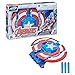 COMES WITH NERF PROJECTILES: Kids can create epic battles while wearing this Captain America Strikeshot Shield. Mech Strike one: activate! Mech Strike two: fire NERF projectile, reload and repeat. Do it again!
