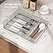 MESH & ANTI-SLIP PADS DESIGN: Made in mesh design, The cutlery tray drawer organizer will not collect dirt and/or grime like similar plastic trays. With four anti-slide pads, this drawer organizer will keep in place while pulling out the drawer. Compared with traditional tray, the improved edging design will protect your hands from scratch. Owning it and enjoying your neat and safe life!