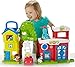 Kids crank the set's elevator to move cars through the playset, and when it's released, the cars spin down and speed off the track.