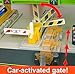 Wait at lowered gates while kids use the crane to move the platform into place. Once it's secure, the gate automatically lifts, allowing cars to pass.