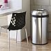 CLEAN, MODERN STYLE. Featuring a brushed silver finish with black handles – along with black rings on both the top and bottom – this sleek, stainless steel trash can adds a clean, modern look that will easily fit into any interior space.