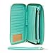 Practical Features: 15 Card Slots, 1 ID Window, 1 zipped coin pocket, 4 open compartment for cash, checkbook, phone and passport. 1 removable leather wristlet strap.The zip around wallet for women is stylish and functional, keep all everyday essentials in one safe place