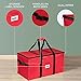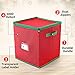 [STORE - SPACE SAVING DESIGN] The storage container comes in 2 colors: red and gray and measure 25" W x 12.8" H x 13" D. A clear identification card slot is positioned in front so you can label your ornaments and keep them organized. Box collapses flat when not in use and can be stored anywhere. Durable handles allow you to comfortably carry your container from room to room.