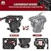 【Compact and Portable】 Measuring only 2.91"/74mm in height, this compact fluid head is lightweight (10.93oz/310g) and has a 1.46"/37mm diameter base. Including all knobs, the entire tripod fluid head boasts an all-metal design, with a textured feel and is more durable.