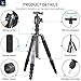 【2-in-1 Tripod with Monopod】:Aluminum travel tripod (Extends from 17"-71");easily converts to a monopod selfie or a walking stick with a maximum height of 71"; 3.37 lbs weight, 17" compact storage size for travel.