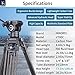 【Package Includes】1 x heavy-duty fluid head tripod,1 x carrying bag, 1 x quick release plate for Manfrotto, 1 x 1/4''-20 screw, 1 x 3/8"-16 screw,1 x user manual.