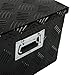 Heavy Duty: This aluminum toolbox features high strength and corrosion resistant black powder-coated aluminum; 5 tread patterns reinforced aluminum for maximum durability; Weather-resistant overlapping lids are designed to withstand harsh weather elements, Durable.