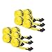 HEAVY DUTY & DURABLE - Yellow polyester webbing that doesn't absorb moisture, shrink, or stretch, increasing their reliability and lifespan - Heavy Duty Ratchet straps heavy duty