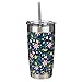 INSULATED BLUE TRAVEL MUG: The navy blue floral tumbler style coffee mug is vacuum insulated to keep your coffee, tea or other favorite beverage drink hot or cold for hours. Travel coffee cup is perfectly sized approximately 7” high and holds 18 ounces of coffee, tea, ice water or other favorite beverage.