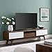 SUPERIOR CONSTRUCTION - Sitting atop tapered legs, this retro media stand features a particleboard frame with walnut grain laminate, and white lacquered full-extension glide drawers for extra storage