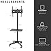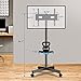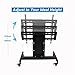 FLEXIBLE VIEWING - PORTRAIT OR LANDSCAPE: You can easily adjust this rolling TV stand’s height from 47 to 65 inches and tilt the display +5 degrees to -10 degrees to achieve optimal viewing angles. This unit features two shelves, one mounted above the display, which can hold projectors, webcams and laptops, and a lower shelf that can hold audio/video devices.