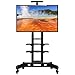 Heavy duty: The mobile TV stand is strong, thick and not easily damaged thanks to its heavy-duty material. This TV trolley with metal lockable wheels is constructed of solid steel and durable ABS plastic. Especially, the main frame is made of good steel with powder coating. So do the hanging board part and top shelf.