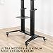 Mobile Floor Cart - The 49” x 30” base features 4 locking casters to make the cart stationary or mobile when desired. The sturdy middle shelf holds laptops, DVD players, streaming devices, and more. High-grade steel and aluminum combined with dual pillar support keeps your equipment safe and secure.