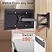 OPTIMISED VIEWING EXPERIENCE - With articulating arms, this tv mount can eliminate window glare with vertical tilting ranging from +5° to -15° and customize your viewing angle with ±90° swiveling from left to right (Maximum swivel angle depends on TV size) and rotates 360° for better viewing experience.