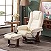 [Faux Leather Swivel Rocker Recliner Chair]: With a swivel rocking base, the chair can swivel 360 degrees and rock forth and back. Pulling a handle pull to raise the footrest up and reclines the backrest to 140 degrees. Recommended user height: 5'1"-5'9”. (Automatic repositioning, when you stand up the chair will automatically return to its original position, no need for you to move)