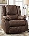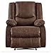 RICH FINISH: Bathed in a warm, cocoa brown hue, this recliner chair makes a bold impression. The divided bustle design and puckered stitching really hits the mark on luxe style and feel