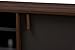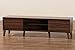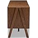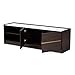 Keep you living room organized in style with the Suli TV stand. Made in Malaysia, this wooden TV stand features a walnut brown finish that creates a warm atmosphere. Two open shelves, fitted with a cord management hole, provide space to place entertainment consoles. One compartment, hidden behind a door, provides additional storage space. Tapered, splayed legs and a low profile lend a cool, retro look. Requiring assembly, the Suli TV stand enhances any space
