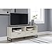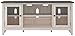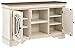 Product 1: TWO-TONE CHARM: A high-style choice in home entertainment, this TV unit with shelving blends a chipped white with a distressed wood tone top for added charm and includes cutouts for wire management